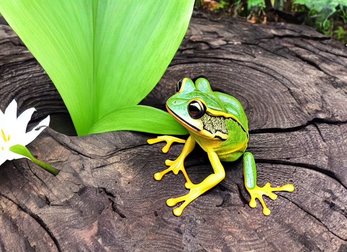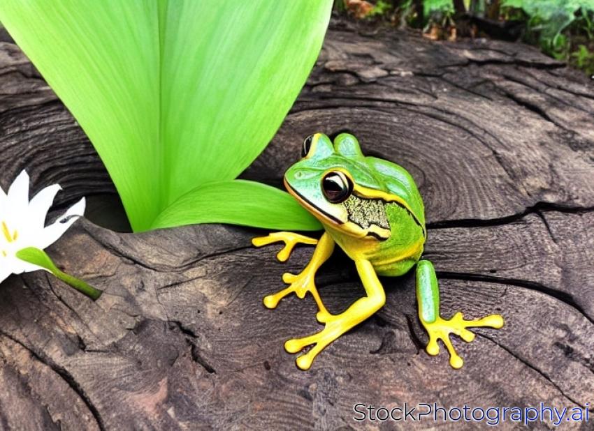 Lily and a frog in wood deep lake