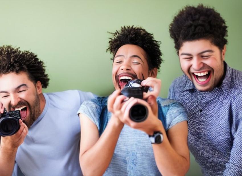 1910-1940 amusing b black and white blonds bow tie brunette cam cameras chuckling comedy comical delightful elegance elegant enjoying exquisite formal attire formal clothing formals formalwear funny gaze glad goodtime happy historical horizontal indoors laughing looking man nostalgia noticing observing people photographic poise recreational retro seeing standing suits taking a picture three viewing vintage w watching woman-