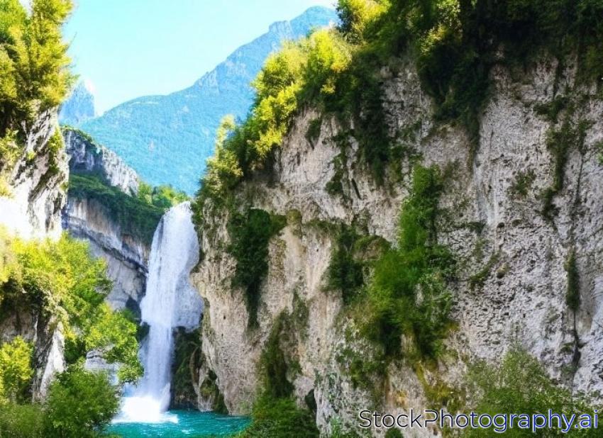 Varone Waterfall Lake Garda,view of the gorge of Varone, Trentino Alto Adige, Italy.
