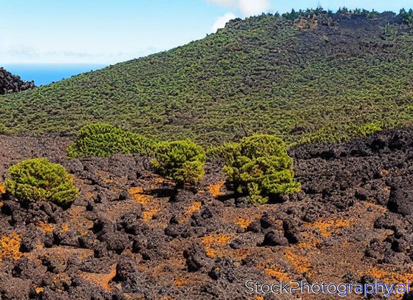 Volcanic landscape and pine forest at astronomy viewpoint Llanos del Jable, La Palma, Canary Islands, Spain