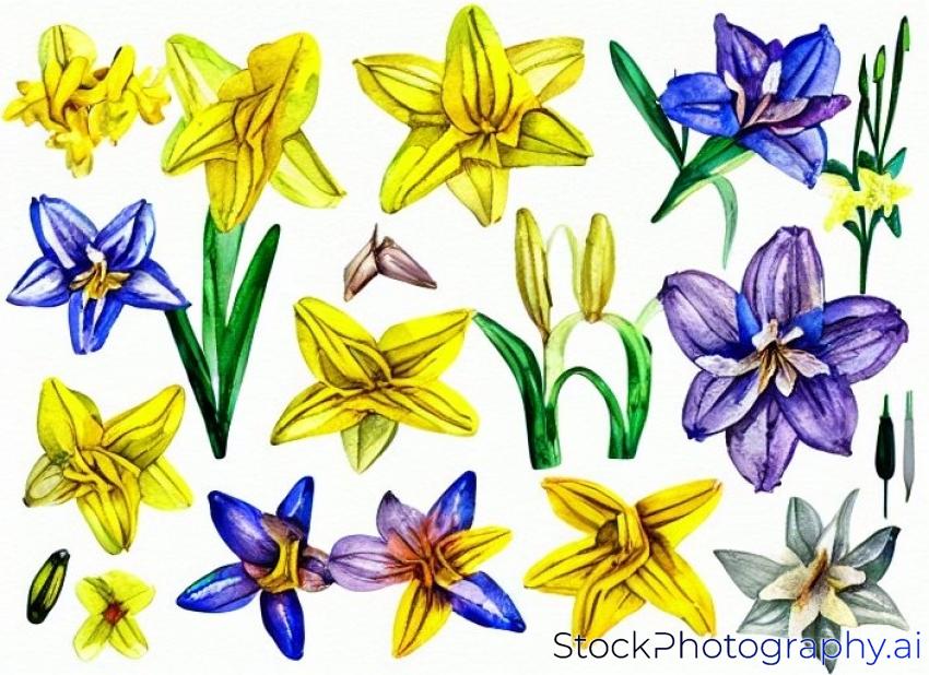 art background beauty bloom blossom botanical botany branch brush bud clip collection daffodil design drawing element floral flower flowers foliage garden gently illustration image isolated leaf lillies lilly lily natural nature ornate painting petal plant retro revival romantic season seasonal spring stem summer texture valentine vintage watercolor yellow-