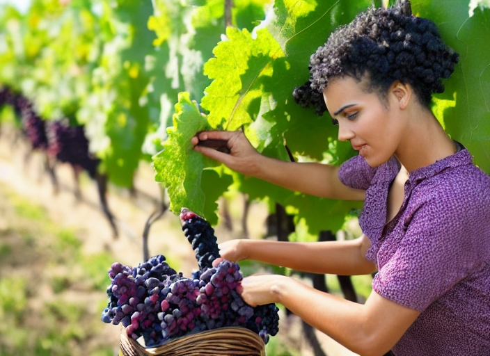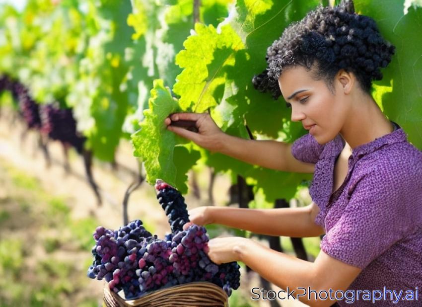 Young Mixed Race Woman Harvesting Grapes in the Vineyard Outside.