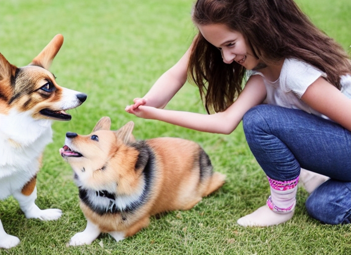 12-15 years animal autumn breed care cheerful children and dogs corgi cute day europe fun girl ingra jeans kazakhstan laugh light clothing love man morning november october on foot park pet pose pottyret protection puppy schoolgirl september small smile square sunny sweder teenager two walk yellow leaves-