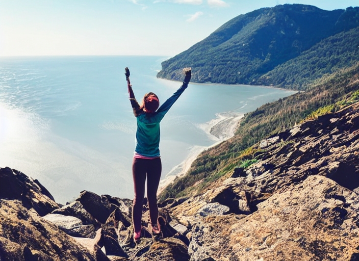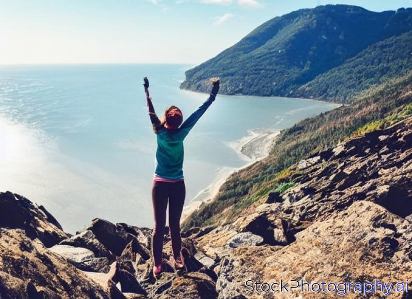 asian backpack backpacker blue cheering chinese cliff clouds commitment daredevil determined enjoy enjoyment excited explore female freedom girl happy hiker hiking japanese korean landscape mountain nature observing ocean one young woman open arms outdoor peak precipice rock sea seaside silhouette sky stone success successful sunrise sunshine thankful travel trekker trekking trip vintage yellow-