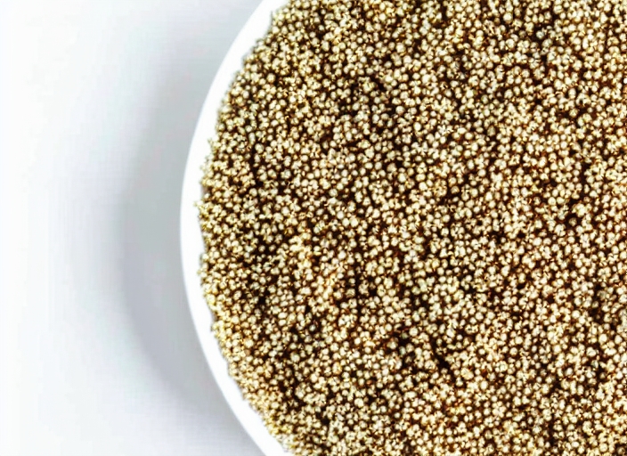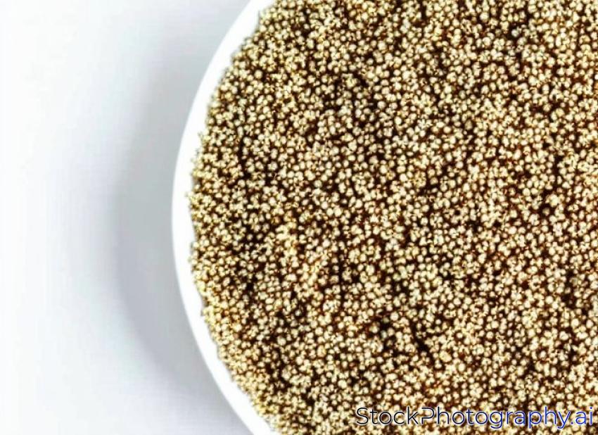 close up of uncooked quinoa, isolated on the white background, top view