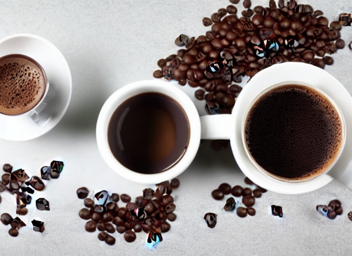 cup of coffee with chocolate and coffee grinder