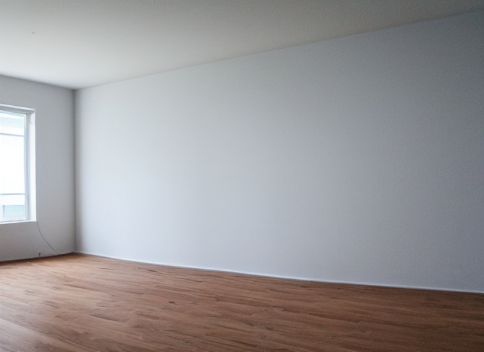 empty room in a new apartment with wooden floor and white wall with a mildew and mold problem