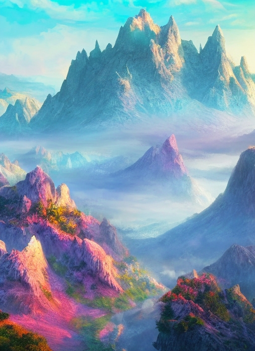 fantasy mountain landscape at the early morning