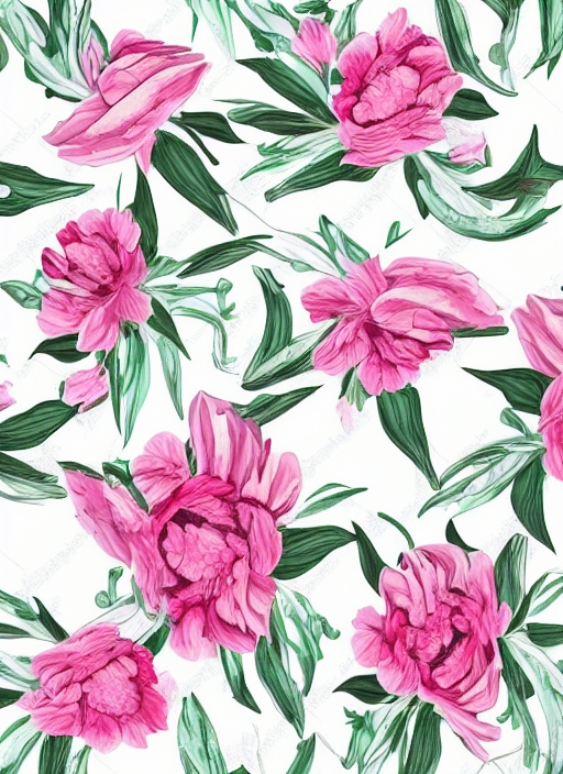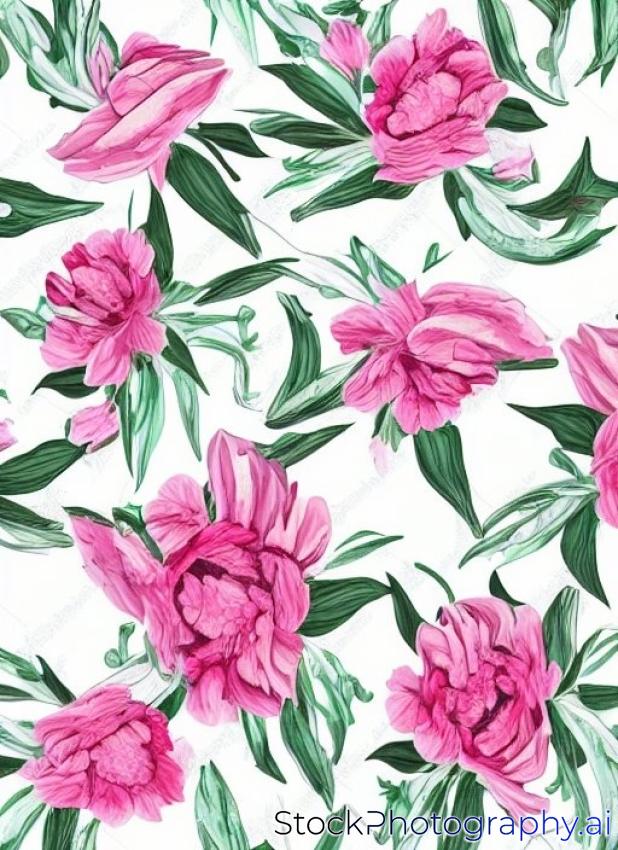 flower original art hand painted bouquet seamless design elegant peony blossoms on a white background