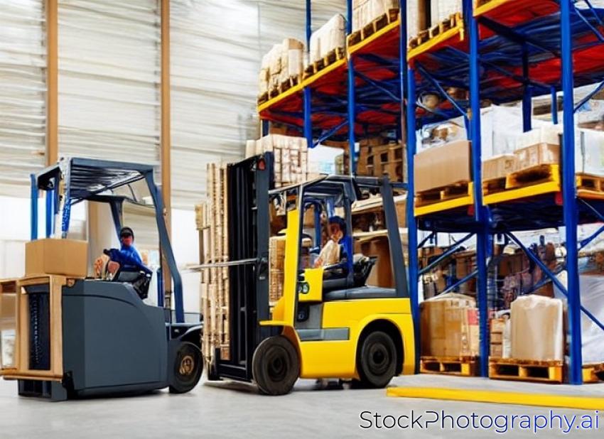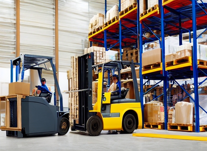 forklift loader working in warehouse