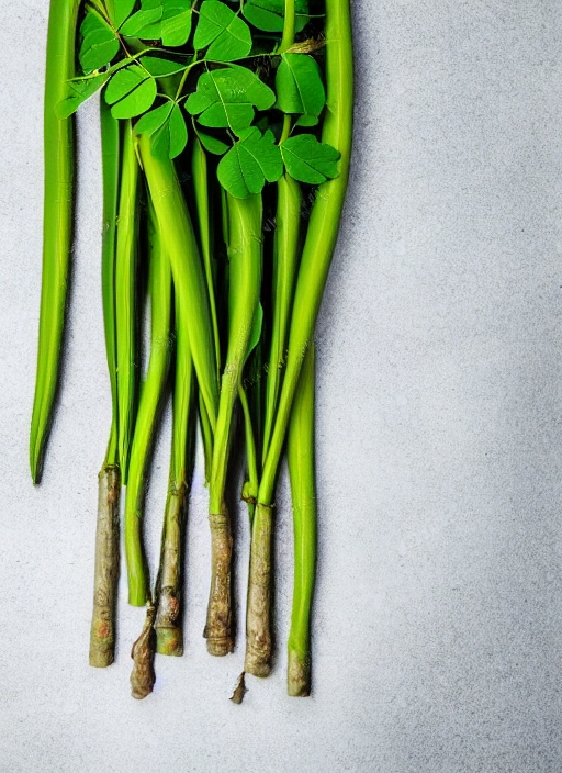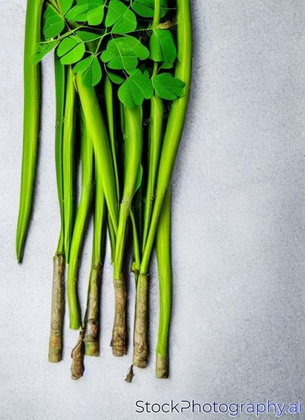 frame drumsticks of moringa oleifera with a branch in it on white background,