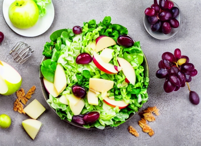 fresh salad with grapes, cheese and apple in cabbage