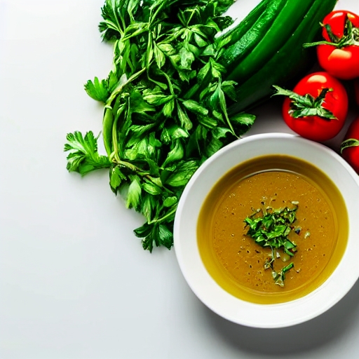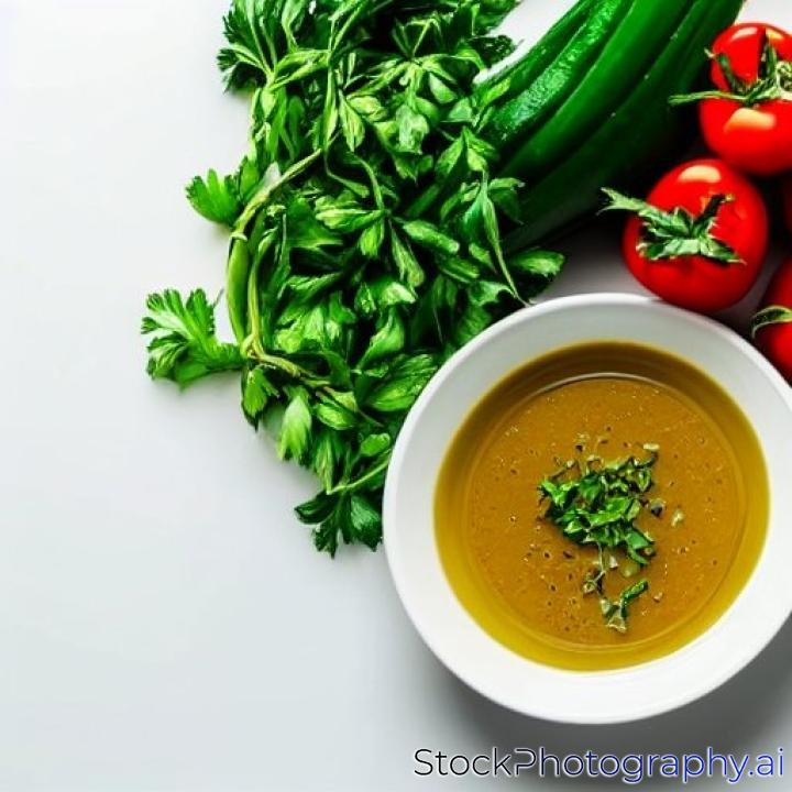 fresh vegetables and herbs and cooking sauce in white bowl isolated on a white background with sample text