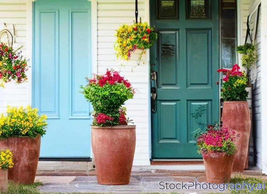 front door of house with flower pot