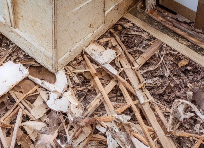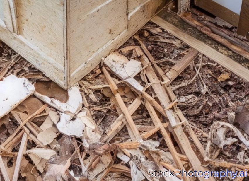 fruiting body of dry rot on the floor ( Serpula syn Merulius lacrymans ); the parquet and the wooden elements are completely destroied