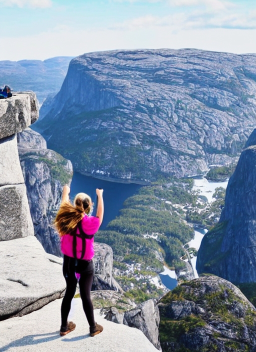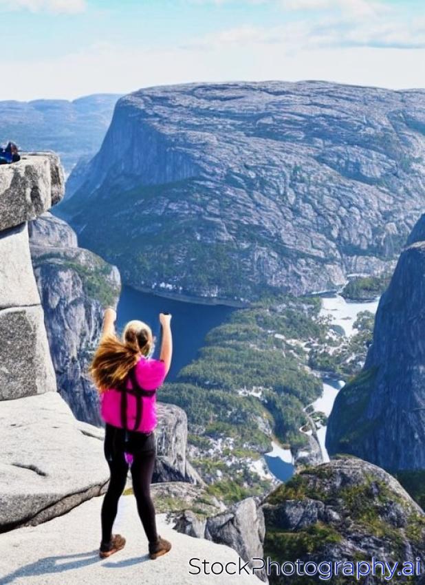 backpack blue cliff climber climbing cloud cloudscape danger edge extreme famous fjord girl hiker hiking kjerag lake landscape leisure look lysebotn lysefjorden man mountain nature norway outdoors panoramic people person preikestolen risk rock sailer sky sport stand stone summer tourist travel view water-
