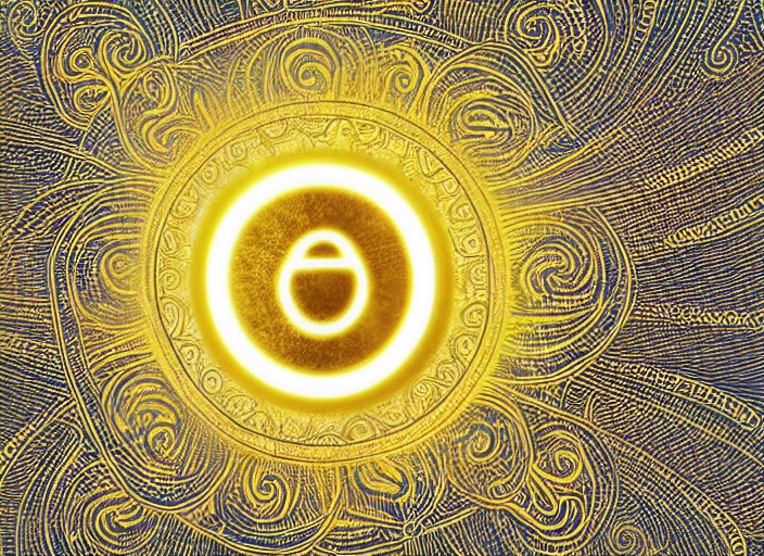golden om symbol emanating light, illustration on abstract background