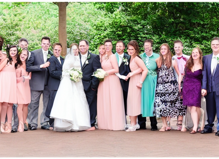 gorgeous happy bride and groom having photos with friends and family at wedding reception, cheerful moment