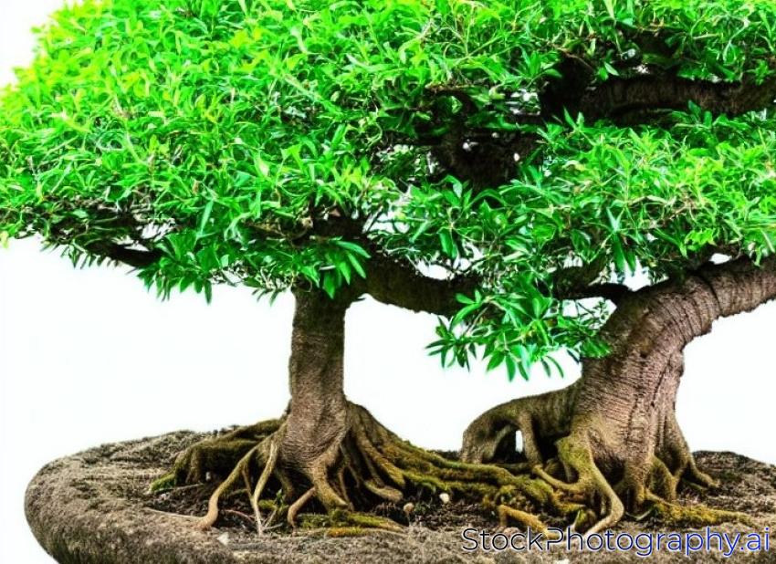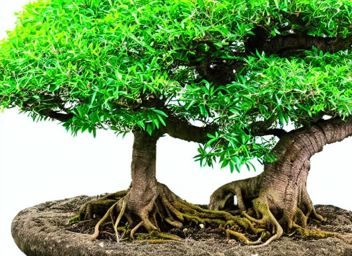 green bonsai banyan tree, isolated on white background