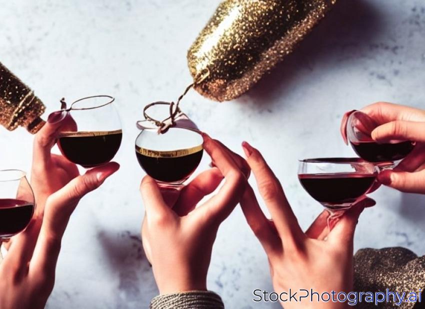 hands holding glasses and toasting, happy festive moment, luxury celebration concept