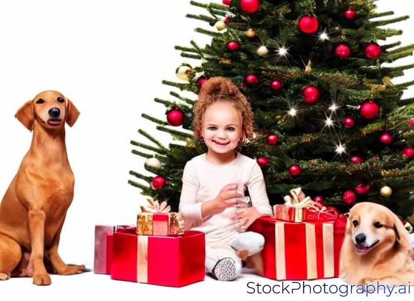 adorable animal beautiful casual caucasian girl celebration child childhood christmas eve christmas tree christmastime cozy dog festive friendship gift boxes gifts girlhood golden retriever greeting happiness happy holiday home indoors kid merry christmas new year people person pet presents preteen smiling xmas youngster-