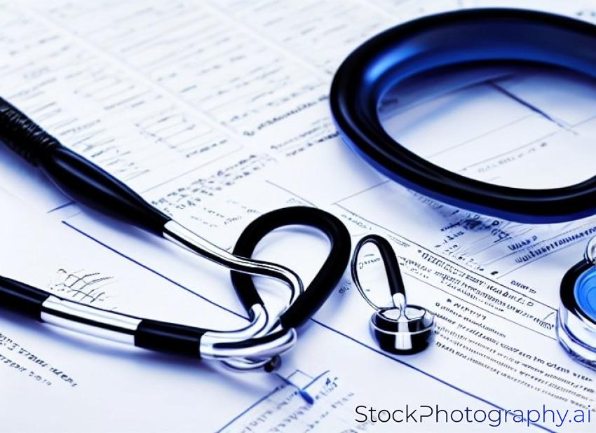health care billing statement with doctor's stethoscope and pen