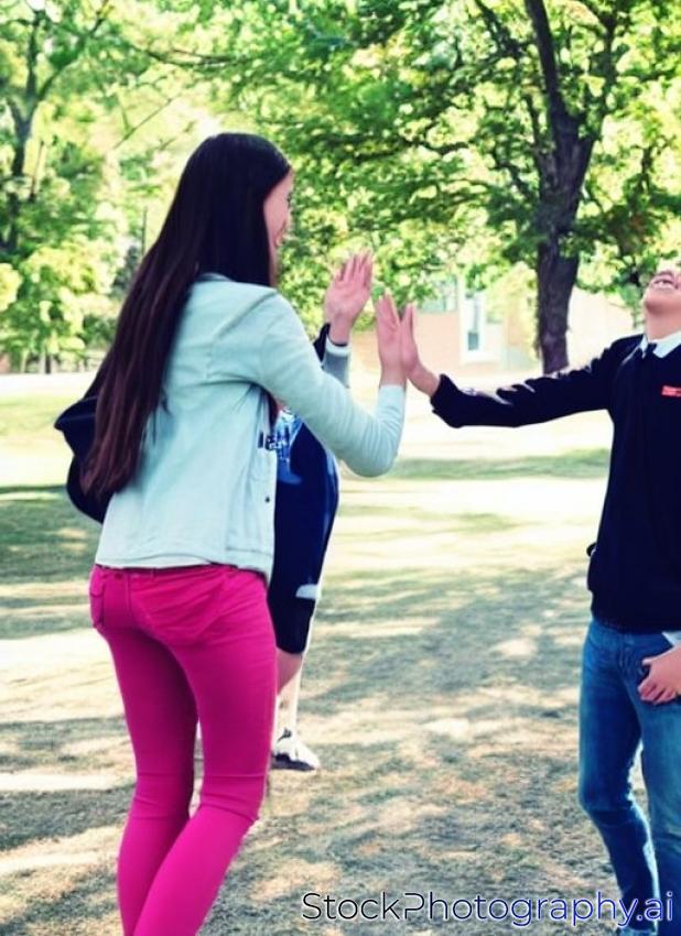high school students couple giving high five