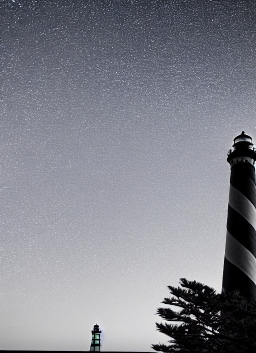 historic cape hatteras lighthouse, illuminated, against clear night sky,winter 2006, long exposure