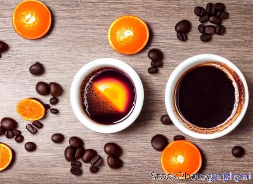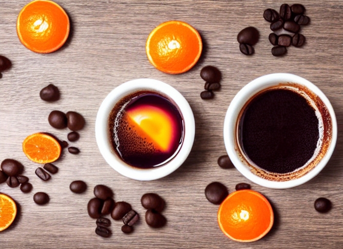 jelly with coffee, orange and chocolate in glasses on a wooden background