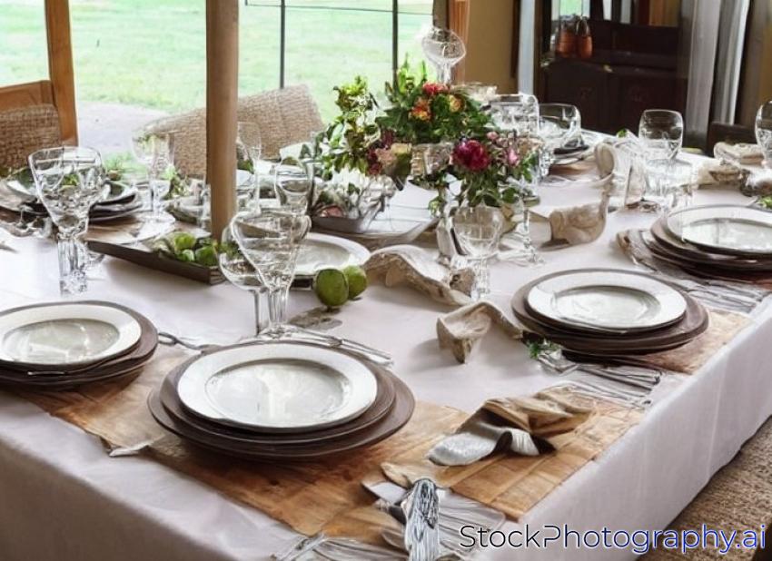 large dinner table set up for a lot of people - focus on the second set of glasses
