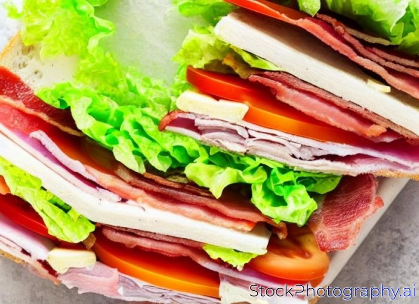 above appetizer background bacon bread breakfast cheese chicken closeup club cuisine delicious dinner dish fast food freshly freshness fried gourmet green ham healthy homemade horizontal layered lettuce lunch mayonnaise meal meat paper rustic salad sandwich sauce skewer sliced snack tasty toast toasted tomato top triangular turkey vegetable view white wooden-