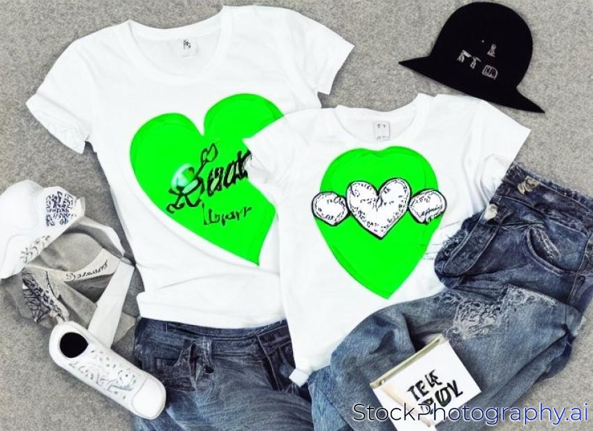 leopard heart and neon green brushed heart , romantic fashion slogan , T shirt print