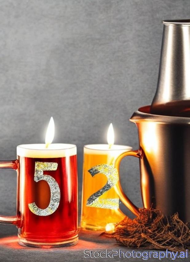 lit number candles in beer mug for 50th birthday celebration isolated on black