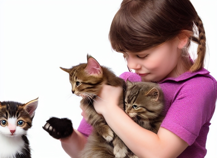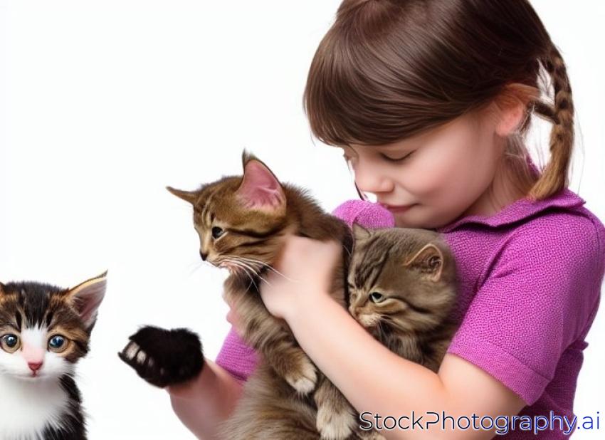 little girl with a puppy and a kitten. isolated on white background