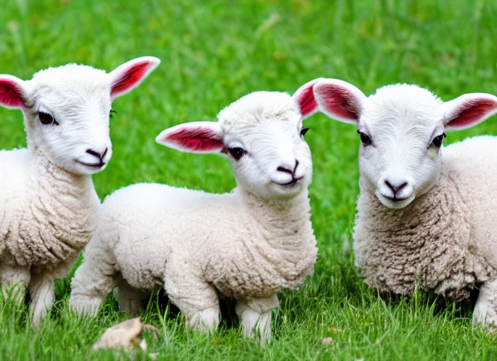 little lambs with the mother in the grass