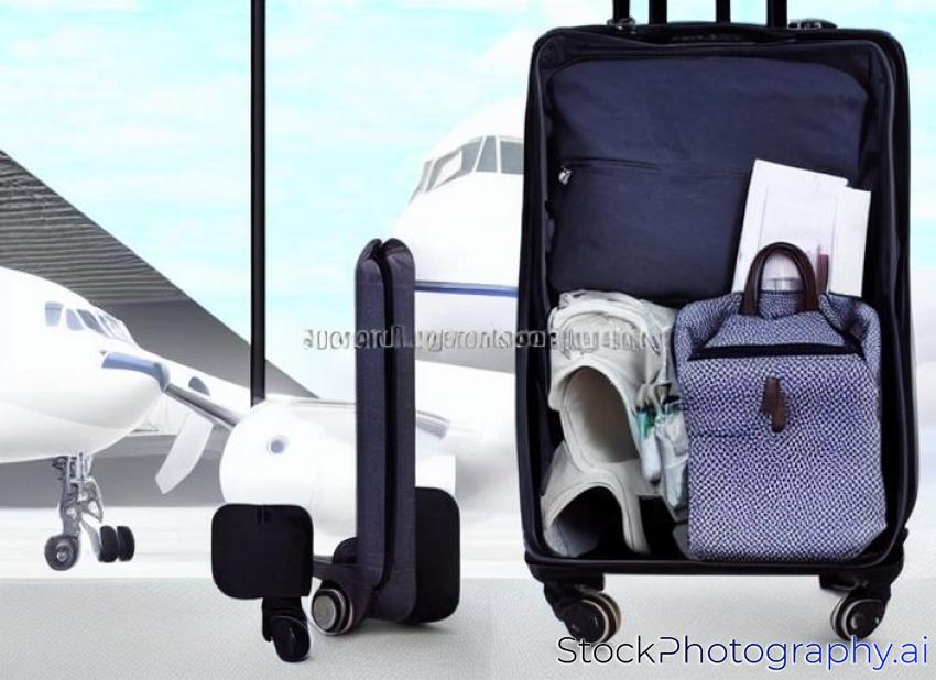 luggage holder on suitcase or bag with TRAVEL INSURANCE ,traveling luggages in an airport terminal,before passenger and plane flying over sky,Can be used for montage or display your products