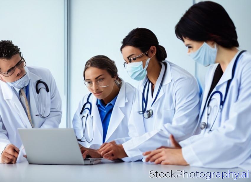 medical teamwork concept with a team of doctors with laptop