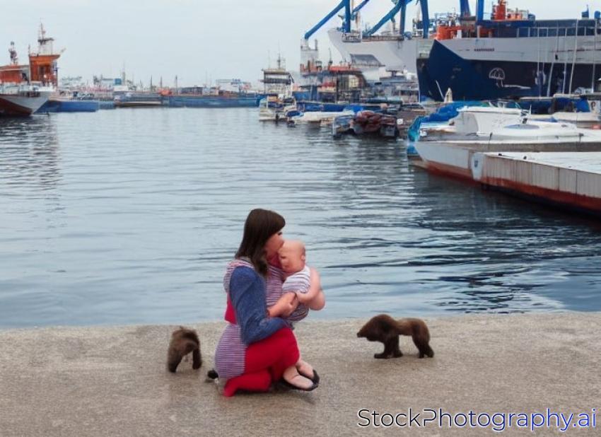 mother and baby in the port