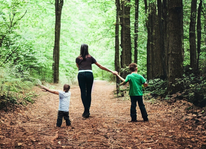 mother end son in a forest