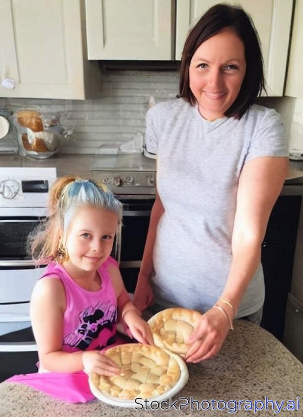 mum with a small daughter do dough for pies