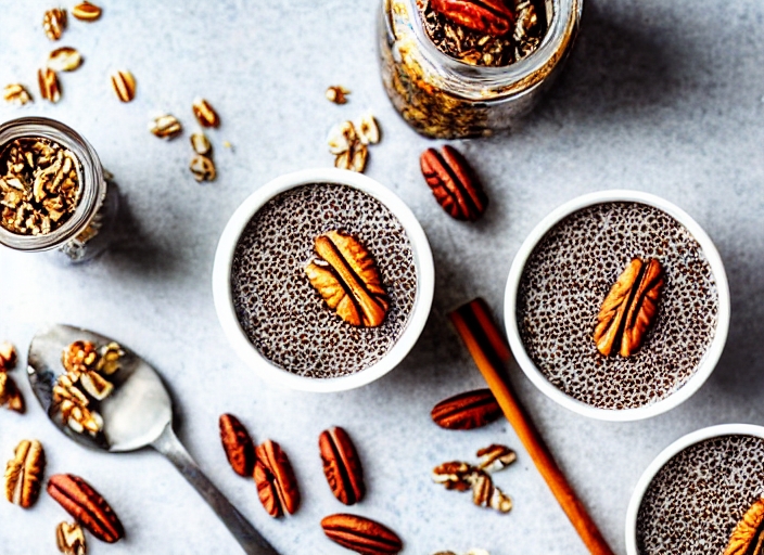 oat cinnamon Chia seed pudding with honey pecan. the toning. selective focus