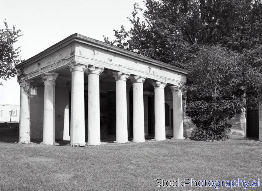 old classic building yard with door and columns