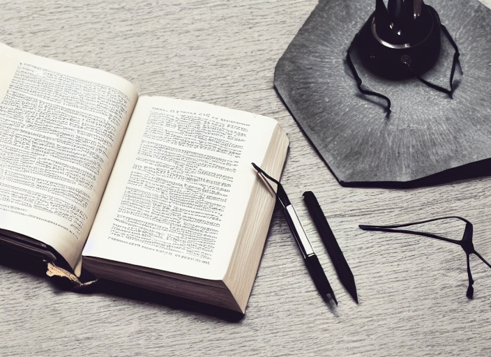 opened book and pen on the table with lamp