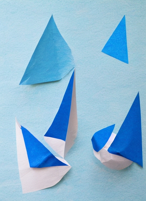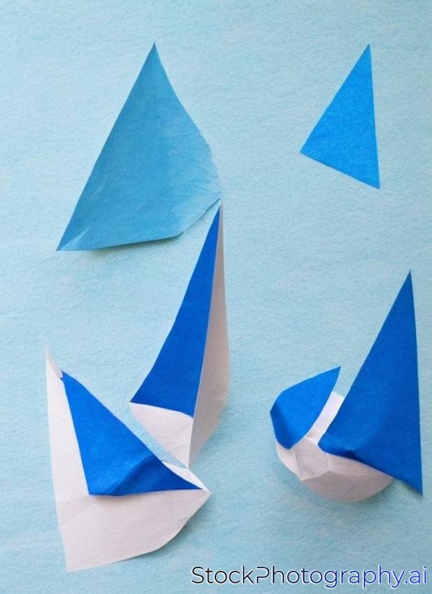 paper ship in blue tissue paper - children's idea of the ship at sea