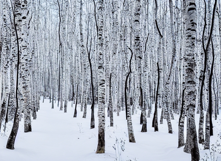 pathway in birch forest, winter landscape in russia