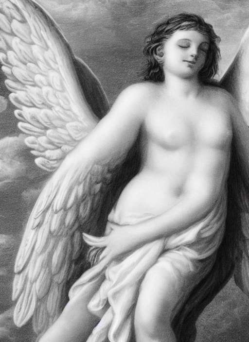 picture of bathing angel with black wings over white