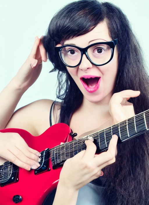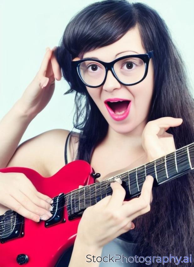 picture of funny girl in specs with electric guitar