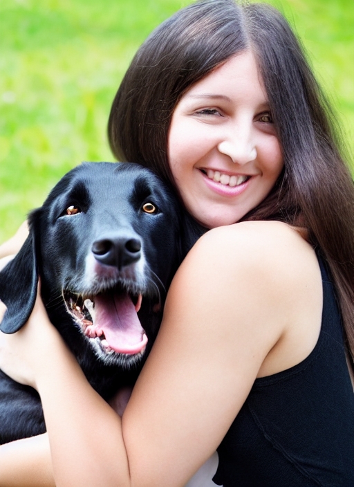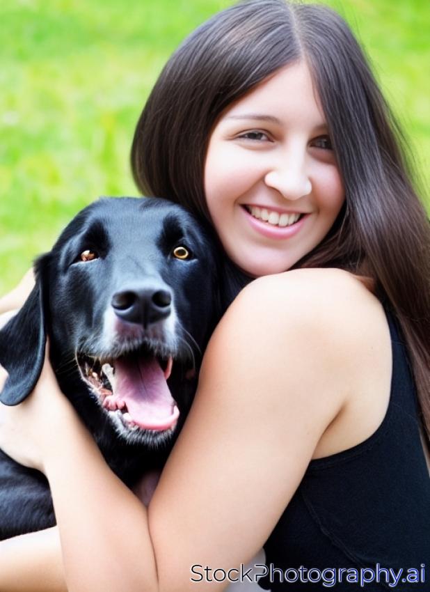 portrait girl with dog. beautiful girl hugging black labrador. happy dog with woman. girl loves her dog. black smiling dog