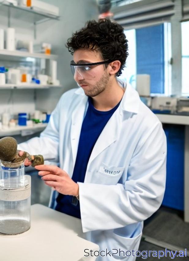 portrait of a young male researcher using a mortar and a pestle to homogenize a mixture while working in a lab