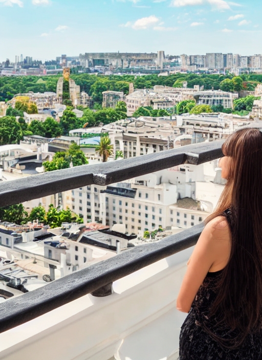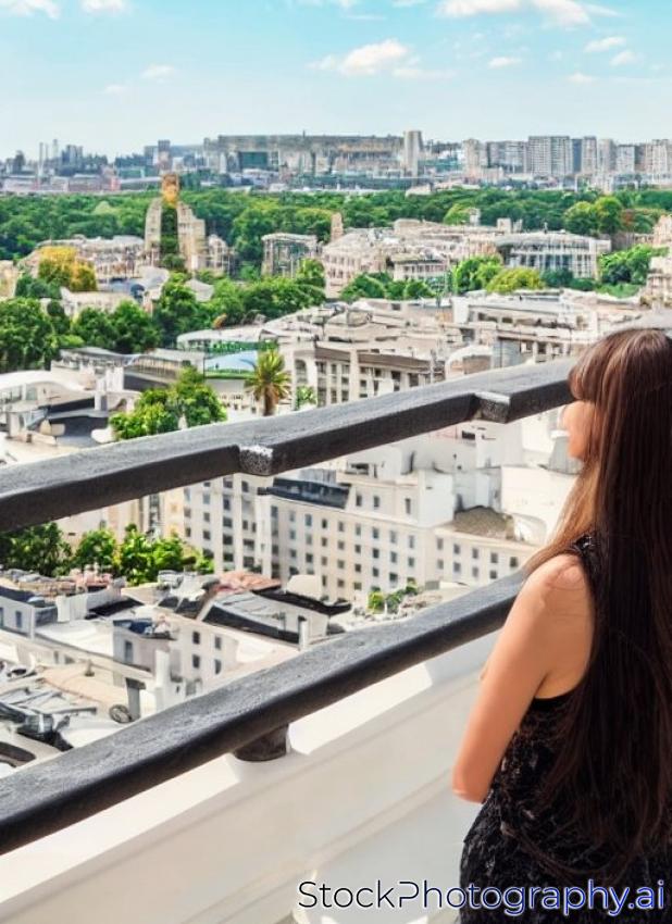 portrait of beautiful woman on the terrace of prestigious hotel back view
